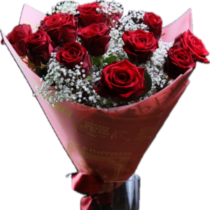 Elegantní kytice z 15 růží s bohatou gypsophilou, která krásně zvýrazní barvu růží a dodá kytici objem i lehkost. Skvělá volba k narozeninám, výročí nebo jako poděkování. 🎁💐
