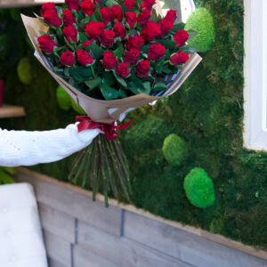 25 červených růží Ribbon 60 cm